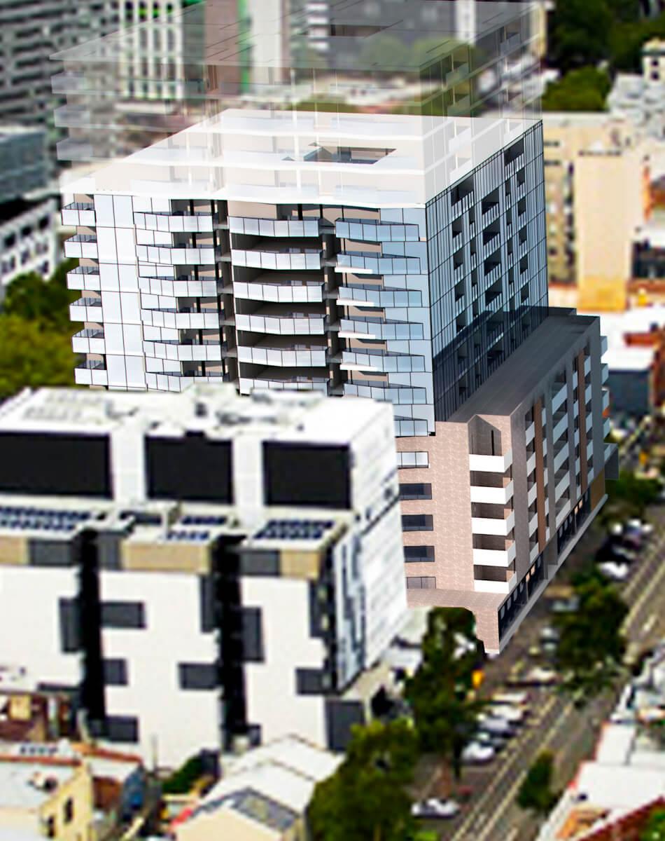 Proposed 200 unit development in Melbourne city indicating potential additional floorspace.